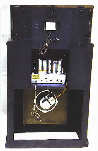 The rear of the set was repainted with flat-black lacquer. I even duplicated the chalk markings that were done at the factory. The rectangular metal box at upper center is the cover for the lamp socket.
