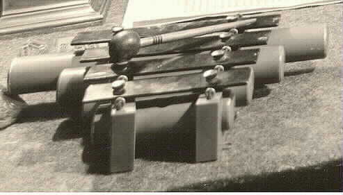 Close-up view of the hand chimes used at radio station WSB by station manager Lamdin Kay, known as