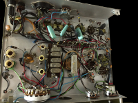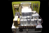 Under the chassis is where the uniqueness of this receiver manifests itself. The circuit design only uses five tubes, all type 6AW8A.