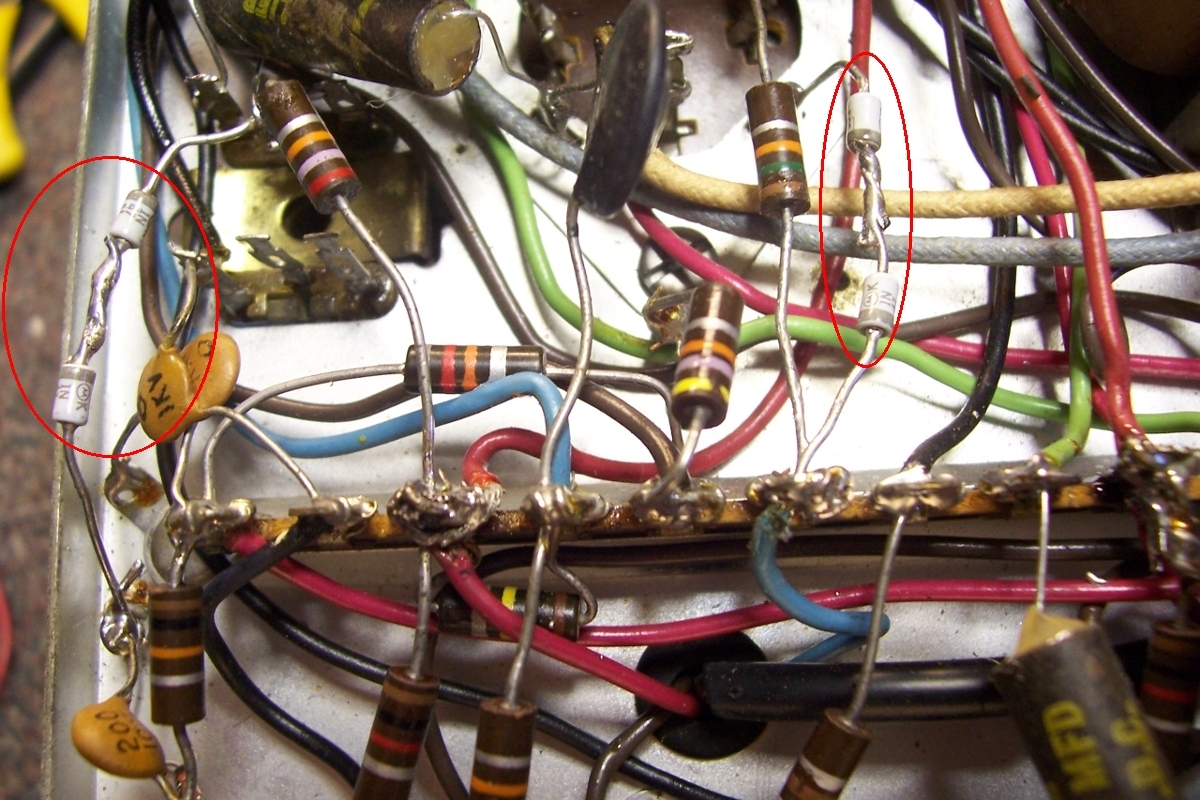 diode to a full wave bridge diode circuit. This eleminated the hum and should also reduce stress on the rather small power transformer.