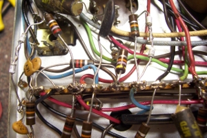 The paper capacitors were also replaced, inserting new capacitors into the original cardboard sleeves.