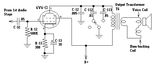 winding of output transformer T6 Open speaker voice coil | |