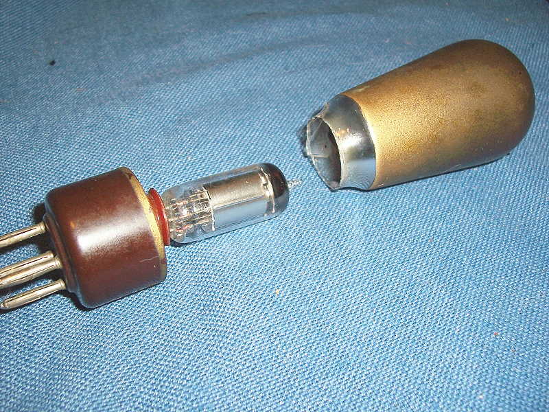 I wondered if there was a modern tube that could substitute in place of a 164. A scan through the tube manual revealed that a 3V4 seven pin miniature battery power pentode might be a good candidate. A 3V4 kludged into the 164 socket wouldn't look very original. As I had a defective 904 tube, I surmise that if I can re-stuff capacitor cans, maybe stuffing a 3V4 into the 904 to make a "custom" 164 might be feasible. I figure nothing ventured, nothing gained.